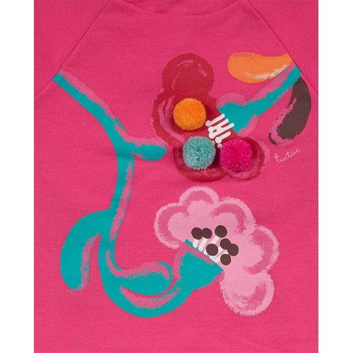 Σετ της εταιρίας TUCTUC, ισπανικής προέλευσης το οποίο περιέχει μια φούξια μπλούζα με σχέδια λουλούδια και ένα κολάν κόκκινο με πολύχρωμα λουλούδια.