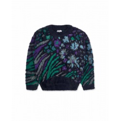 Μπλούζα- πουλόβερ της εταιρίας ΝΑΤΗ, ισπανικής προέλευσης σε σκούρο μωβ χρώμα με πράσινες, μπλε και μωβ λεπτομέρειες.
